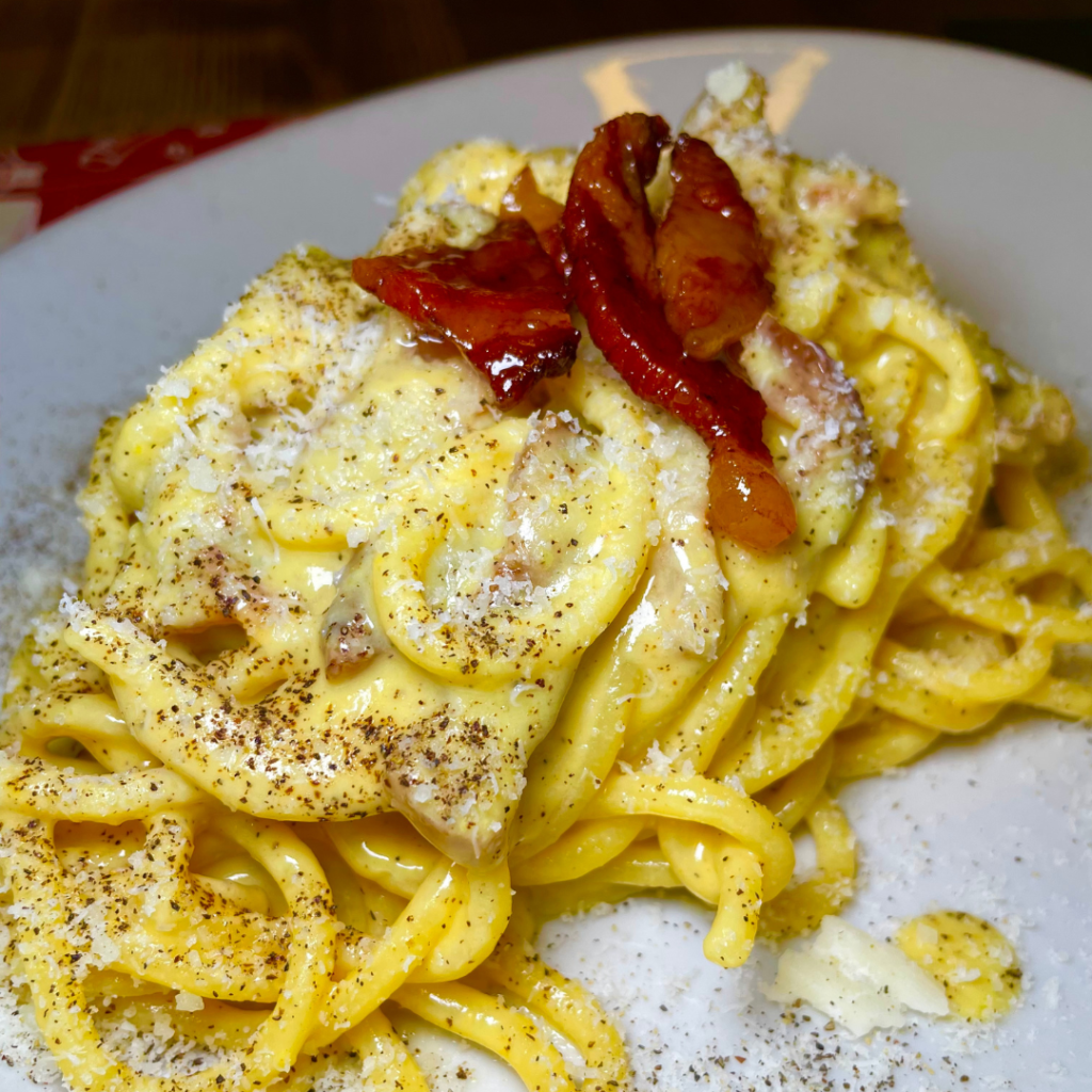 Dai piatti più classici della tradizione romana, come la carbonara, la cacio e pepe, l’amatriciana, la gricia, a creazioni più moderne, come le Fettuccine al ragù bianco, porcini e tartufo o i nostri Ravioli crema di zucchine, menta e pecorino.